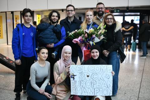 Premijer Kantona Sarajevo Nihad Uk, ministar kulture i sporta Kantona Sarajevo Kenan Magoda i ministrica za rad, socijalnu politiku, raseljena lica i izbjeglice KS Enda Pavić Pečenković danas su na Međunarodnom aerodromu Sarajevo svečano dočekali Zakiru Pušinu, evropsku prvakinju u streljaštvu, koja je ispisala historiju bh. sporta osvajanjem prve zlatne medalje za našu zemlju na Evropskom prvenstvu.